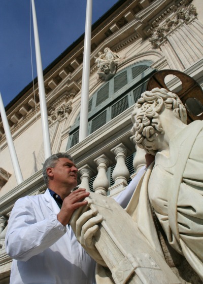 travertino della loggia Berniniana e i marmi dei gruppi scultorei del Maderno e del Berthelot. Sia per gli elementi scultorei in travertino che per quelli in