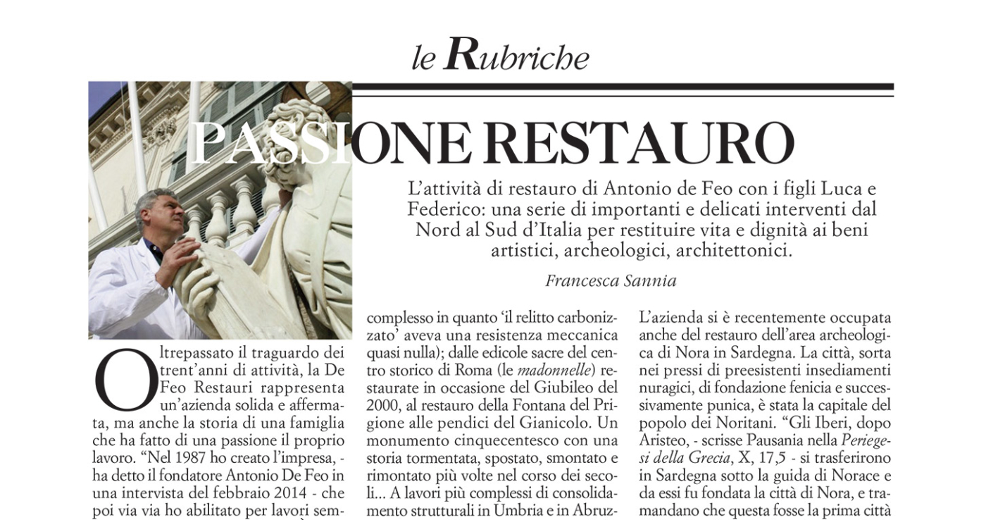 Oltrepassato il traguardo dei trent’anni di attività, la De Feo Restauri rappresenta un’azienda solida e affermata, ma anche la storia di una famiglia che ha fatto di una passione il proprio lavoro