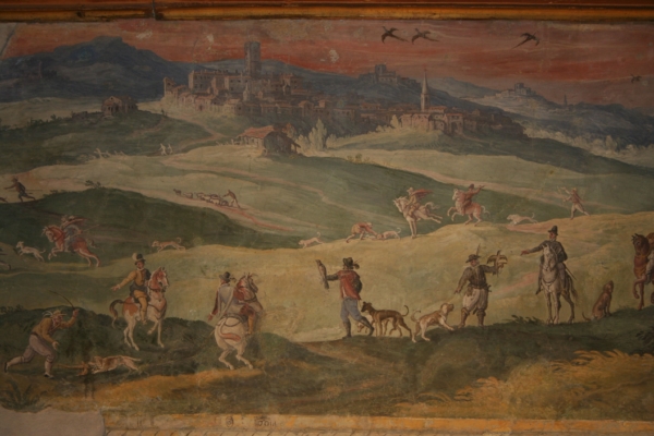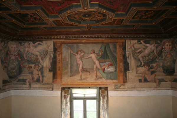 Brief historical notes. Around 1400 the Orsini undertook the first transformation of the Palace which would become the seat of their residence. As various documents from the family’s archive attest, in the middle of the century Pius II was hosted there, and from the beginning two distinct residences were structured in the fortress for the two branches of the Orsini family. The palace assumes considerable importance when Clarice Orsini, belonging to the branch descended from Giacomo Orsini, married Lorenzo de Medici in 1469. In 1500, the village of Monterotondo with its fortress were inherited by Franciotto Orsini who modified and enlarged the structure trasforming it from fortress to noble residence, completing the lower floors and the royal staircase that led to the noble apartments of Leone X, cousin of Franciotto Orsini. The works continued at the beginning of the seventeenth century, when the fiefdom became the property of the Barberinis in 1626. The Barberinis carried out an important further expansion of the building in order to make it more functional. All the Orsini’s inscriptions are covered and replaced with those of the Barberinis. In particular, in the rooms with the frescoes by Siciolante and Bril, the task of superimposing the Barberinis’ coats of arms over those of the Orsini was entrusted to Simone Lagi in 1628. Monterotondo, in 1727, was sold to the marquises Grillo from Genoa, under whom the Palazzo underwent only a few improvements. In 1814, the property passed to the Boncompagni family, who made it their country residence. In 1890 the municipal administration of Monterotondo bought the property by allocating the rooms to school rooms first and then to municipal offices.