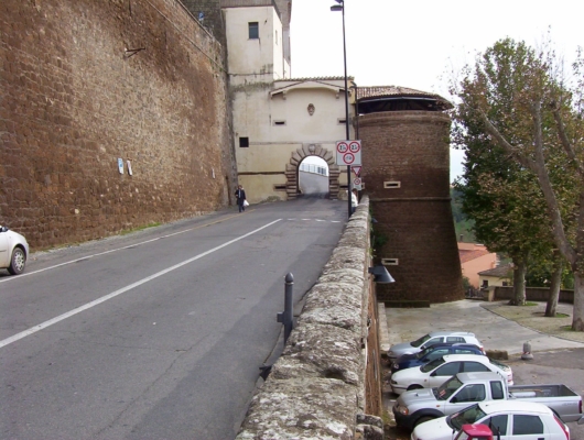 Brief historical notes. Half a millennium was not enough to transform the image of the city of Gallese: an urban body gathered from a mighty city wall, in the indistinct rural landscape, from where architectural emergencies redesign the representative and symbolic structure of the city as they stand out on the horizon. The Porta di Mezzo, for centuries the only access to the city, was designed during the urban reorganization of the early 16th century, when the transfer of ownership of the fiefdom to the Della Rovera family ensured the reconstruction of the castle structure, demolished at the end of the previous century. The entire complex was cleverly inserted into the wall perimeter, an intelligent sign of urban planning: the hand of the architect Antonio da Sangallo, to whom the initial design of the new castle structure is attributed, can clearly be seen in the allocation of the urban door. The construction of the current arch and of the adjoining cylindrical tower must, however, be attributed to the Altemps family who commissioned its design and construction to the master Martino Longhi the Elder.