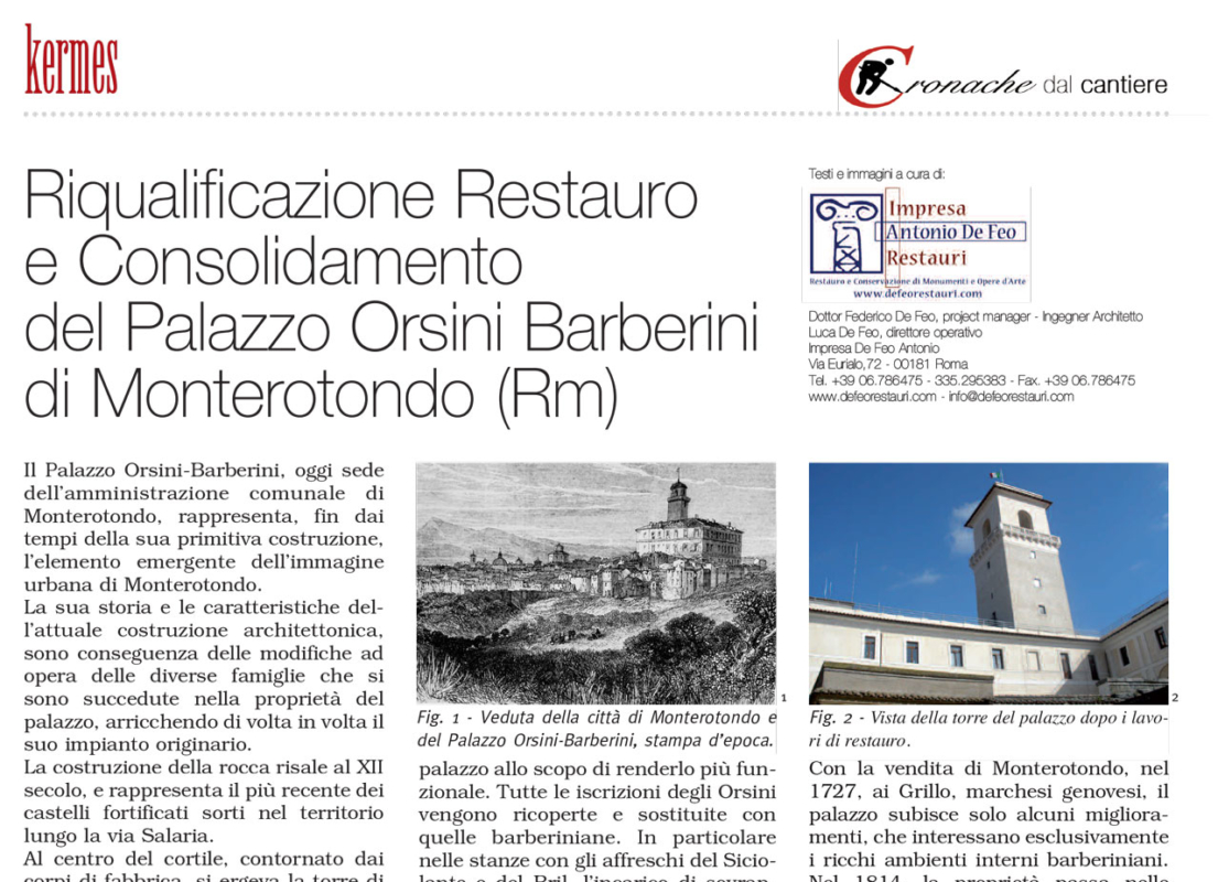 I l Palazzo Orsini-Barberini, oggi sede dell’am- ministrazione comunale di Monterotondo,rappresenta, fin dai tempi della sua primitiva costru-zione, l’elemento emergente dell’immagine urbana di Monterotondo