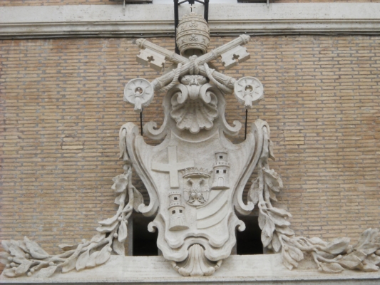 Brevi cenni storici. La facciata principale del Quirinale, nonostante caratterizzato dalle austere forme tardo rinascimentali disegnate dal Fontana per Sisto V, è animata dall’imponente portale del Maderno, eretto nel 1615, con colonne sorreggenti un ricco timpano, su cui vi sono le statue di San Pietro, opera dello stesso Stefano Maderno, e del San Paolo di Guillaume Berthélot. Al di sopra si erge maestosa la Loggia delle Benedizioni, eseguita nel 1638 su disegno del Bernini, al cui centro si trova la Madonna con Bambino di Pompeo Ferrucci.