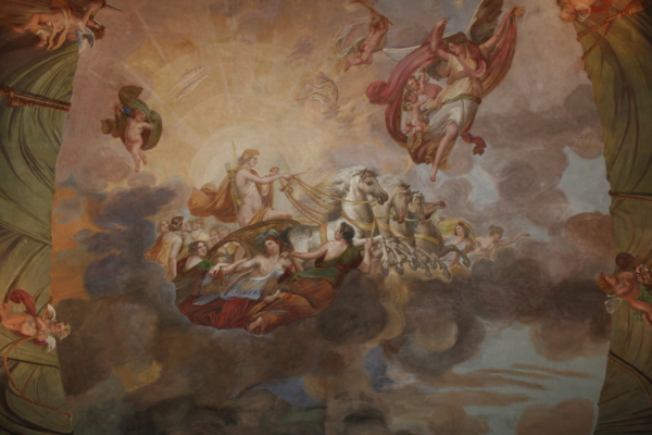 Brevi cenni storici. Il Teatro, che nella sua accezione attuale fu voluto dall’Accademia degli Astrusi, da cui prende il nome, la quale usava, fin dal XVI sec., per le sue rappresentazioni teatrali una stanza del Palazzo Comunale, è citato negli archivi comunali fin dal 1678. Fu ristrutturato nella seconda metà del XVIII sec. (presumibilmente dall’anno 1763) dall’architetto Leonardo De’ Vegni, che per il Teatro previde una struttura a ferro di cavallo, con due ordini di palchi e platea tipicamente all’italiana. Mirabile il soffitto di questo teatrino settecentesco completamente affrescato dal pittore senese Giovanni Battista Marchetti, già collaboratore di Antonio Galli Bibbiena nella scenografia rococò del Teatro dei Rinnovati a Siena, con scene mitologiche di gusto neoclassico: Carro del Sole con Apollo circondato dalle nove Muse. Tale affresco è stato recentemente ricondotto all’attività del Maffei.